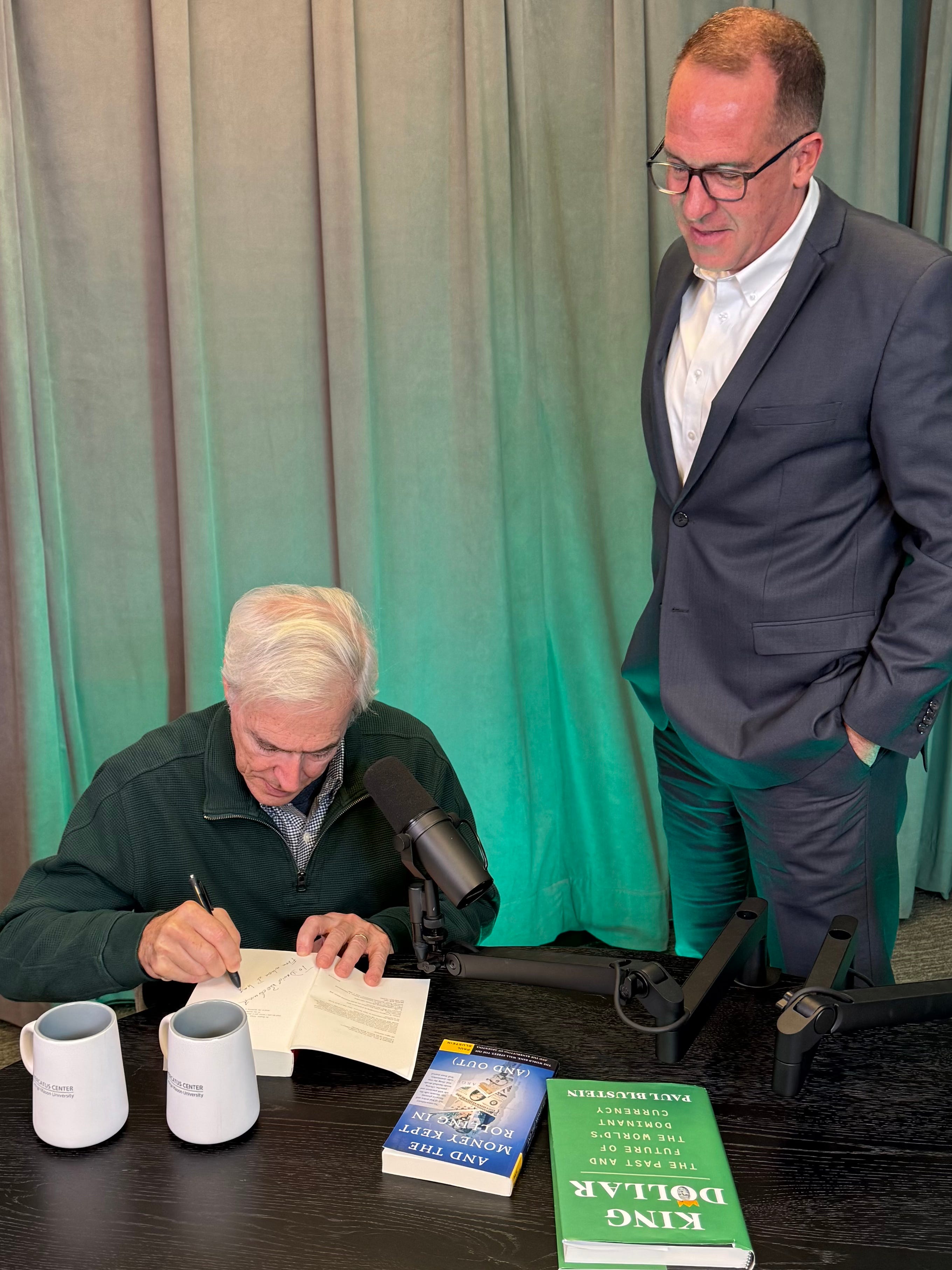 So it was really special for me to welcome Paul to Macro Musings. His storytelling helped launch my career and now he is a guest on my podcast telling more stories to the listeners. In the photo below, he is signing his books that I brought to the studio, including the one that really connects us—The Chastening. I feel blessed to have crossed paths with Paul in these different ways.